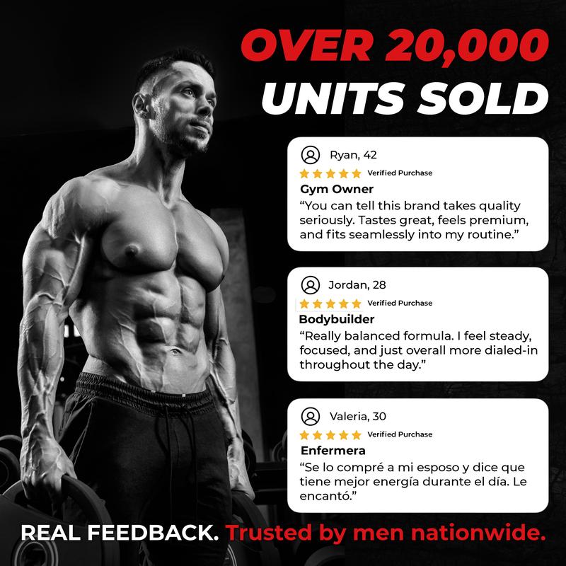 Formulated with hormone-supporting powerhouses like Tongkat Ali and Boron, this blend helps optimize natural testosterone production. Tongkat Ali (200:1 extract) reduces SHBG to free up testosterone, while Boron helps control estrogen levels, giving you the hormonal balance needed for drive, confidence, and libido.