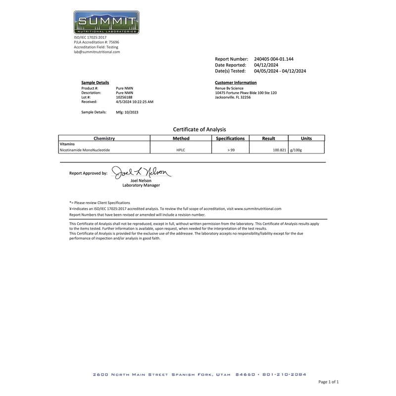 - Absorption & use: NMN is absorbed and utilized to help sustain healthy, youthful NAD+ production.